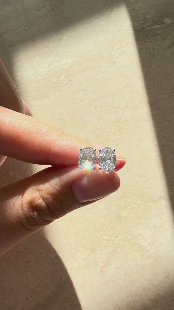 A pair of oval lab grown diamond studs set in 18K white gold.