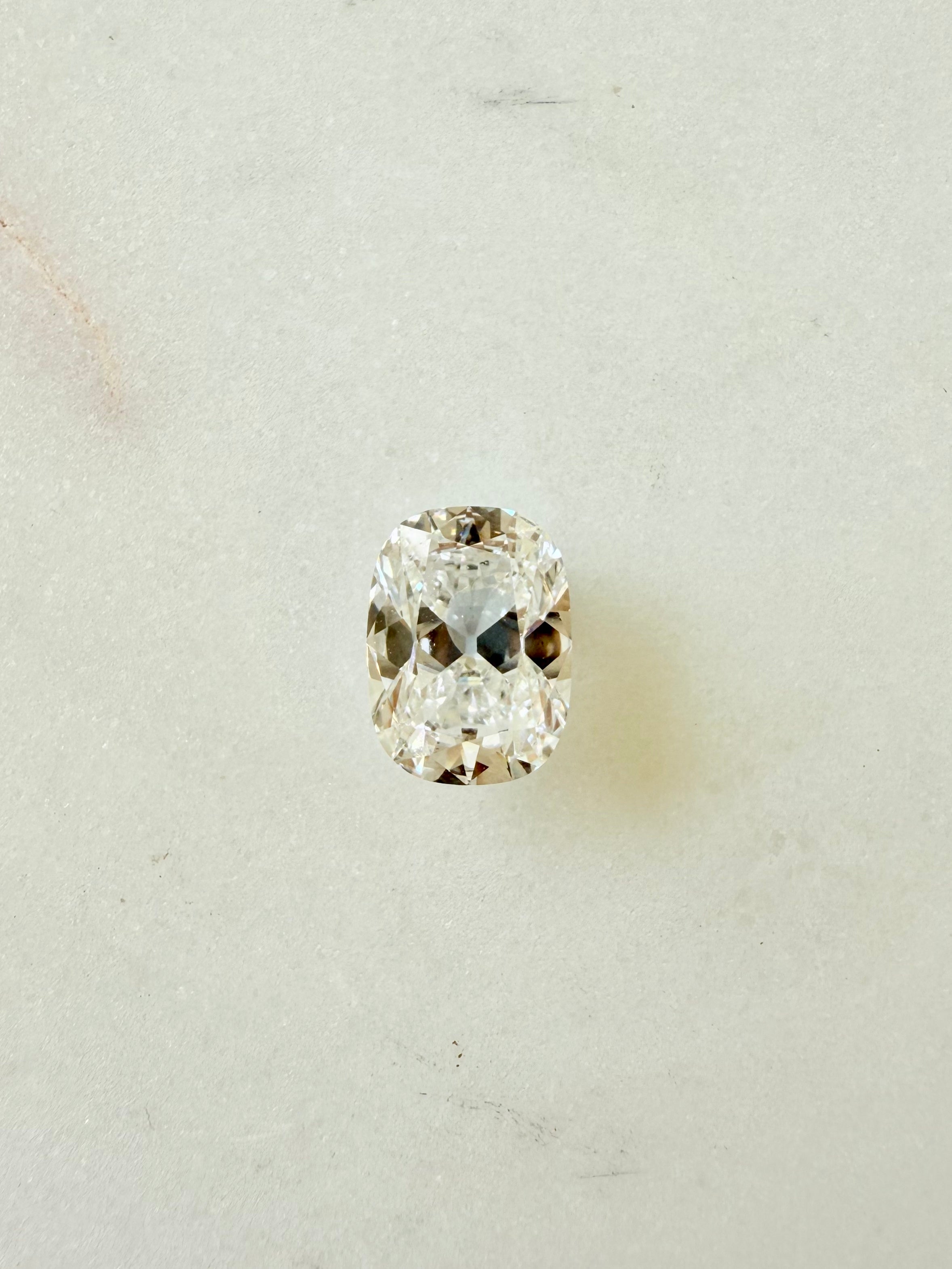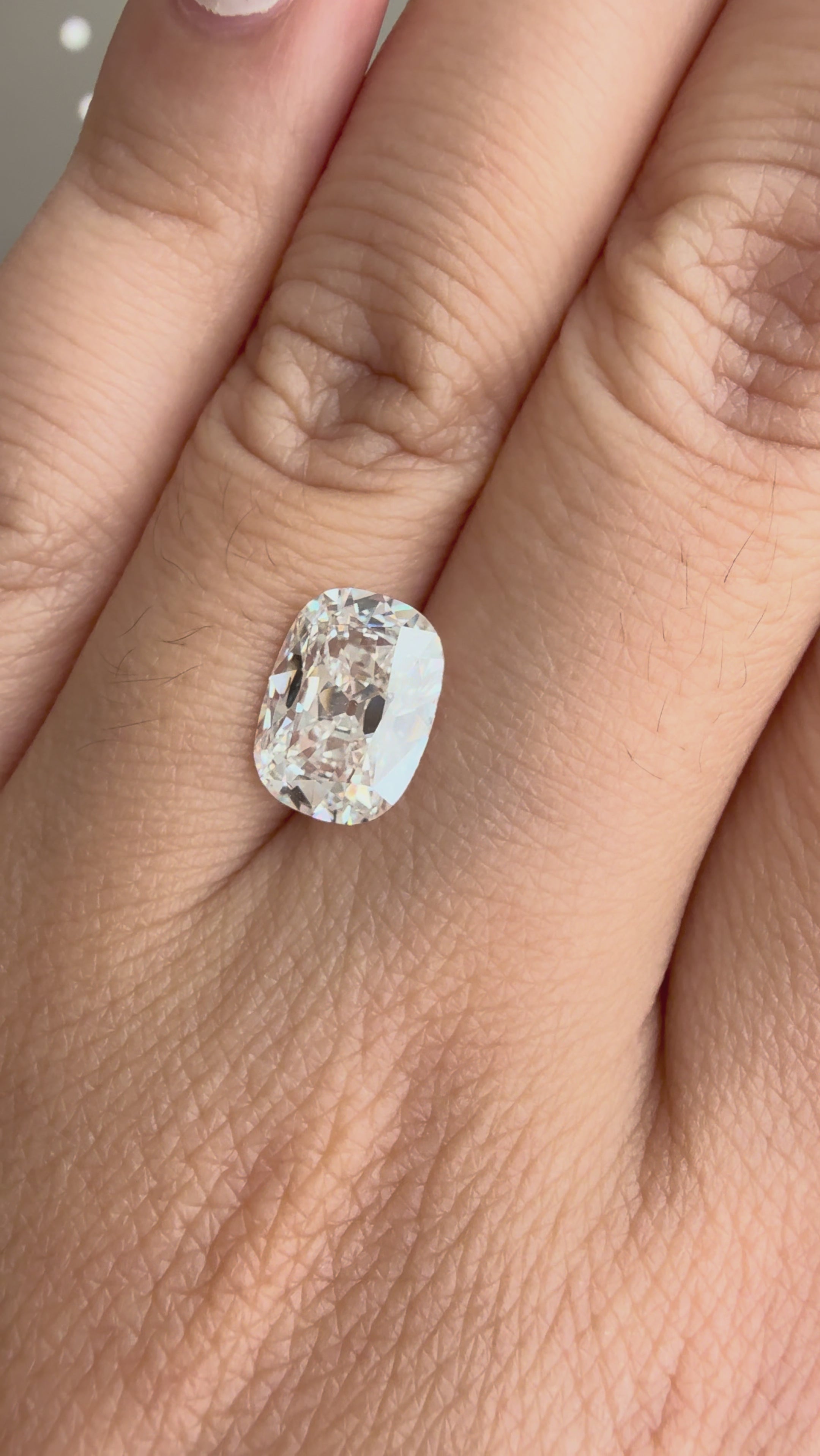 This 3.45-carat elongated old mine cut cushion diamond captures the subtle romance of antique design - soft, pillowy facets, a gentle glow, and unmistakable charm. IGI-certified and lab grown, it offers E color, VS1 clarity, and a beautifully balanced 1.34 length-to-width ratio.