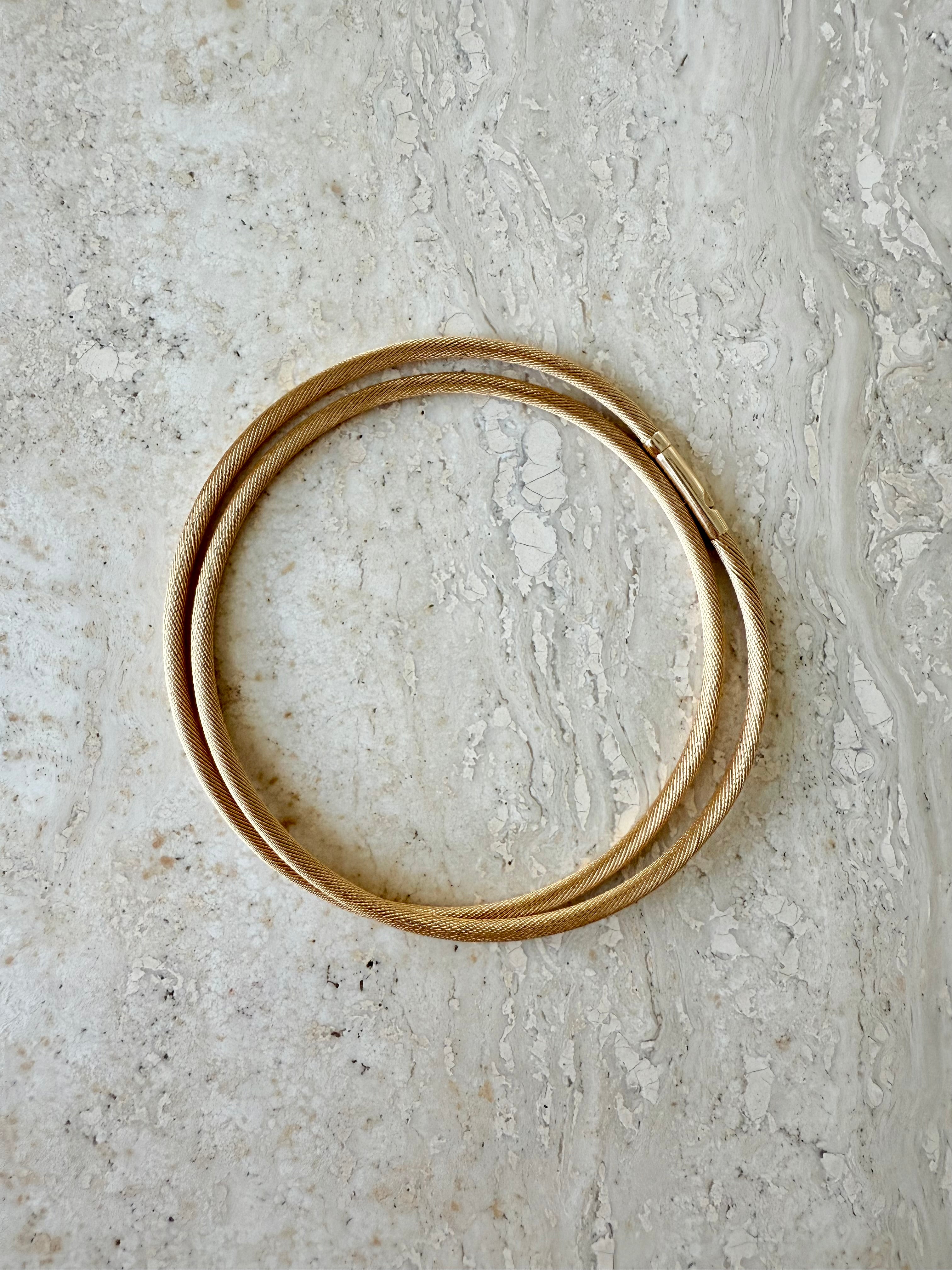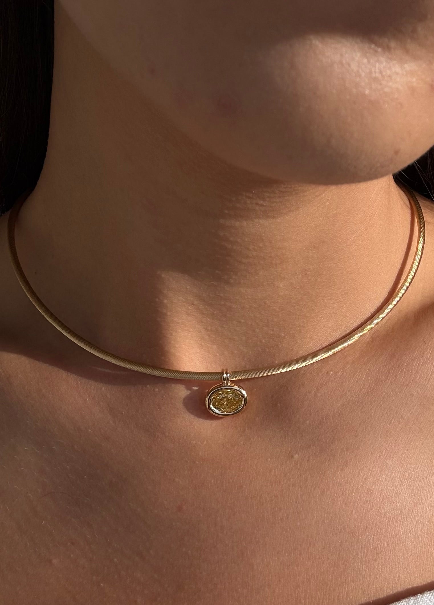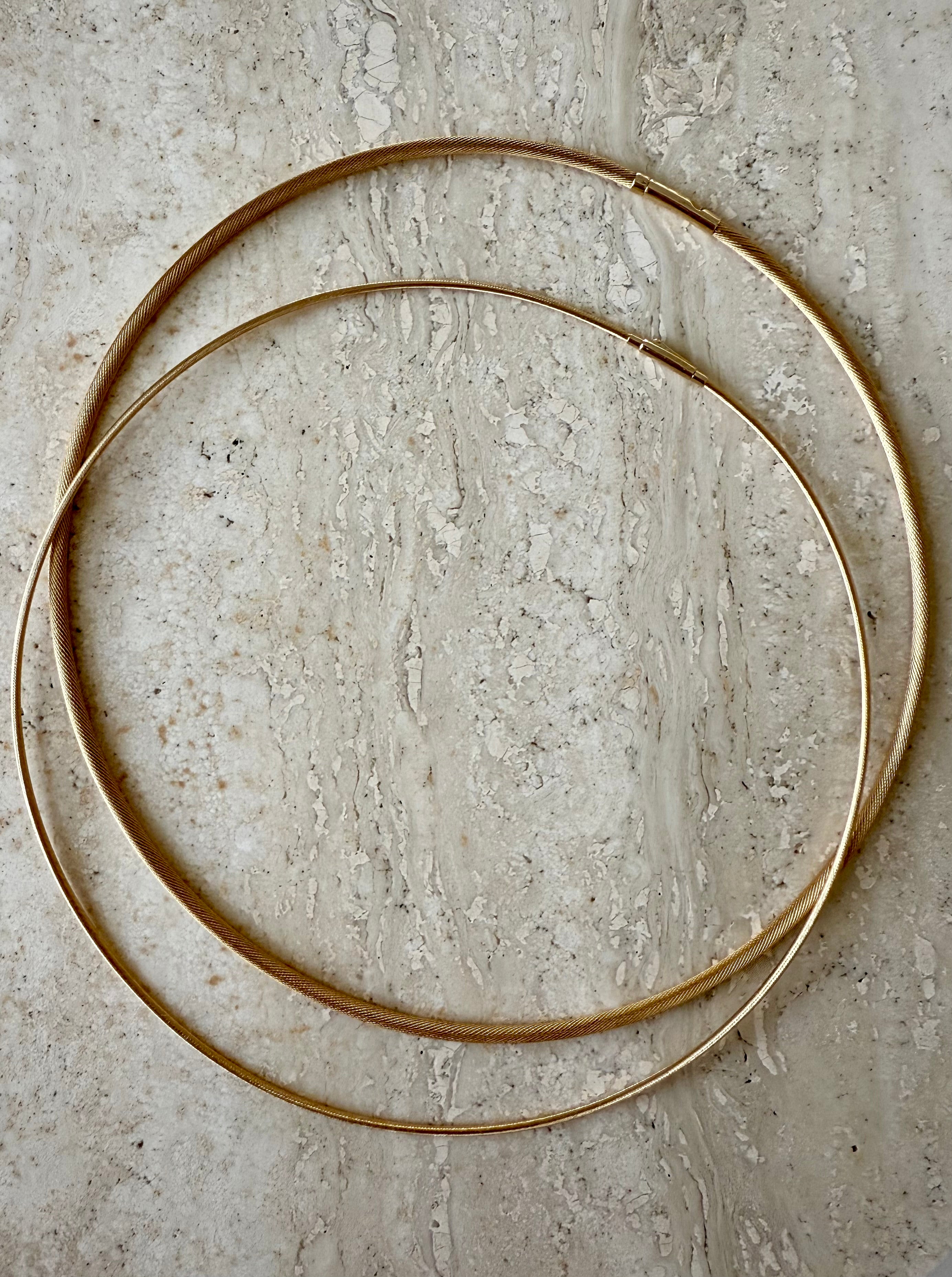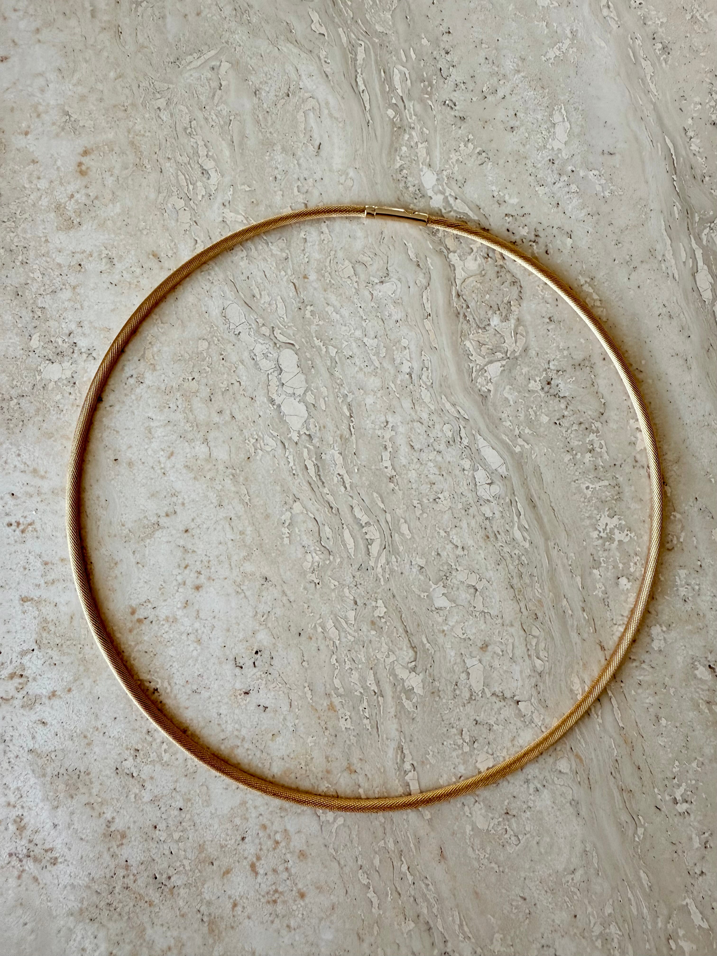 The Mojo Signature Choker is the perfect balance between an omega chain and a snake chain. It is designed to hold a structured, circular form while remaining flexible and comfortable to wear. Featuring a simple click-and-release clasp, it’s easy to put on by yourself.