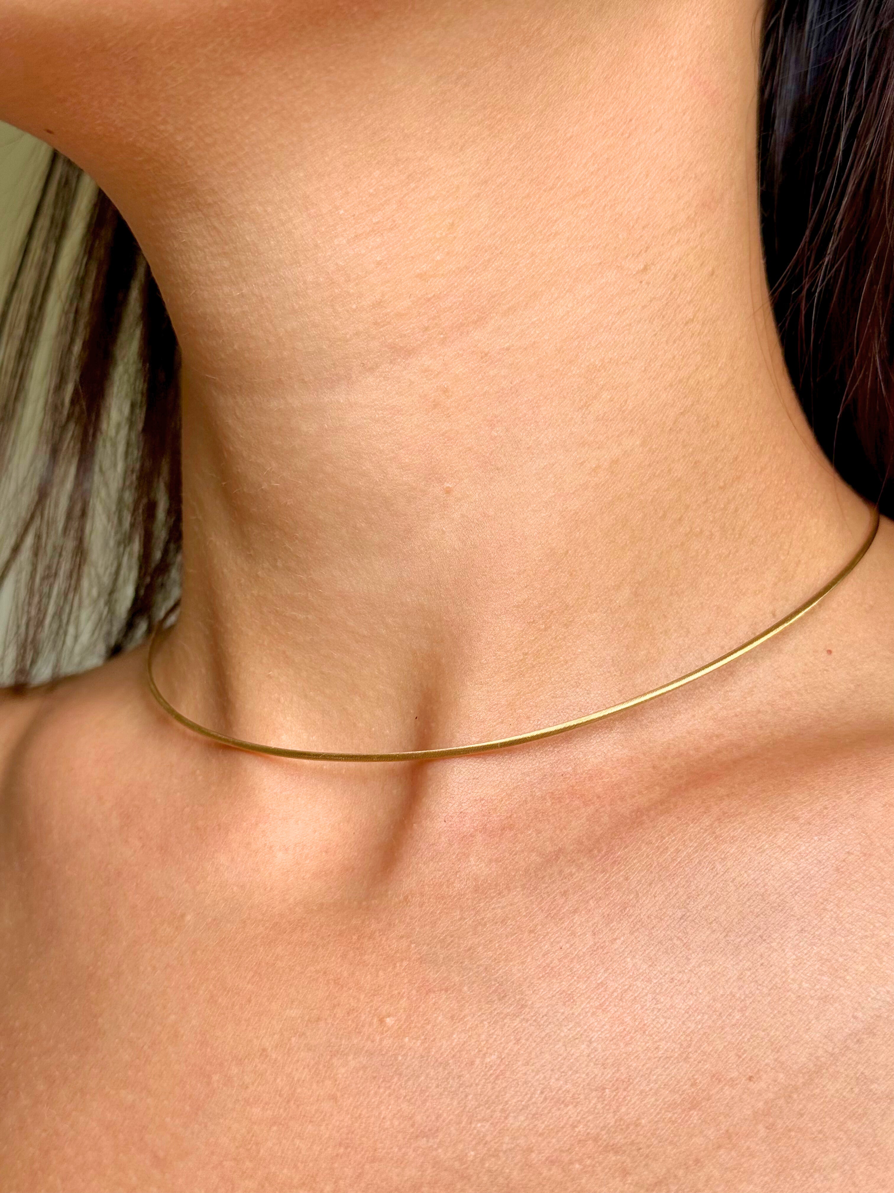 The Mojo Signature Choker is the perfect balance between an omega chain and a snake chain. It holds its structured shape while staying flexible and comfortable to wear daily. Featuring a simple click-and-release clasp, it’s easy to put on by yourself. Unlike traditional omega chains, it doesn’t have a stiff hard shell and won’t kink, making it just as practical as it is polished. Wear it solo for a sleek look or pair it with your favorite charms and pendant.
